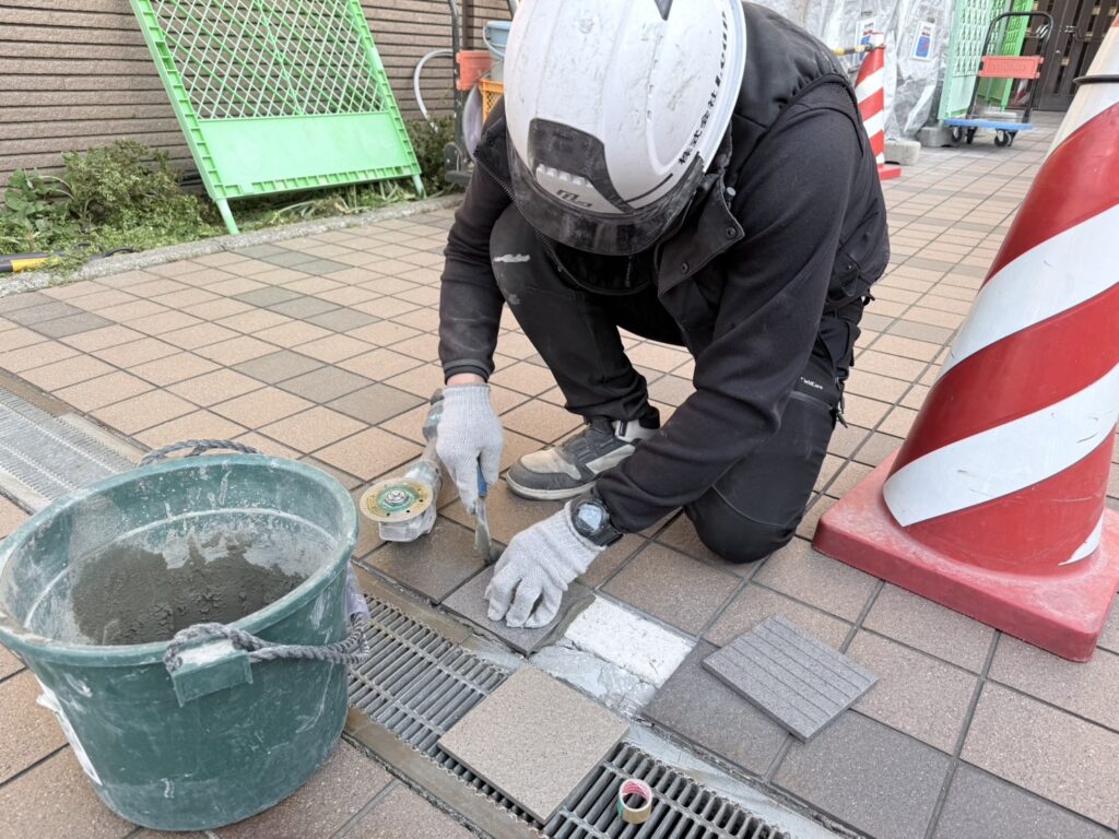 土間タイル張り替え