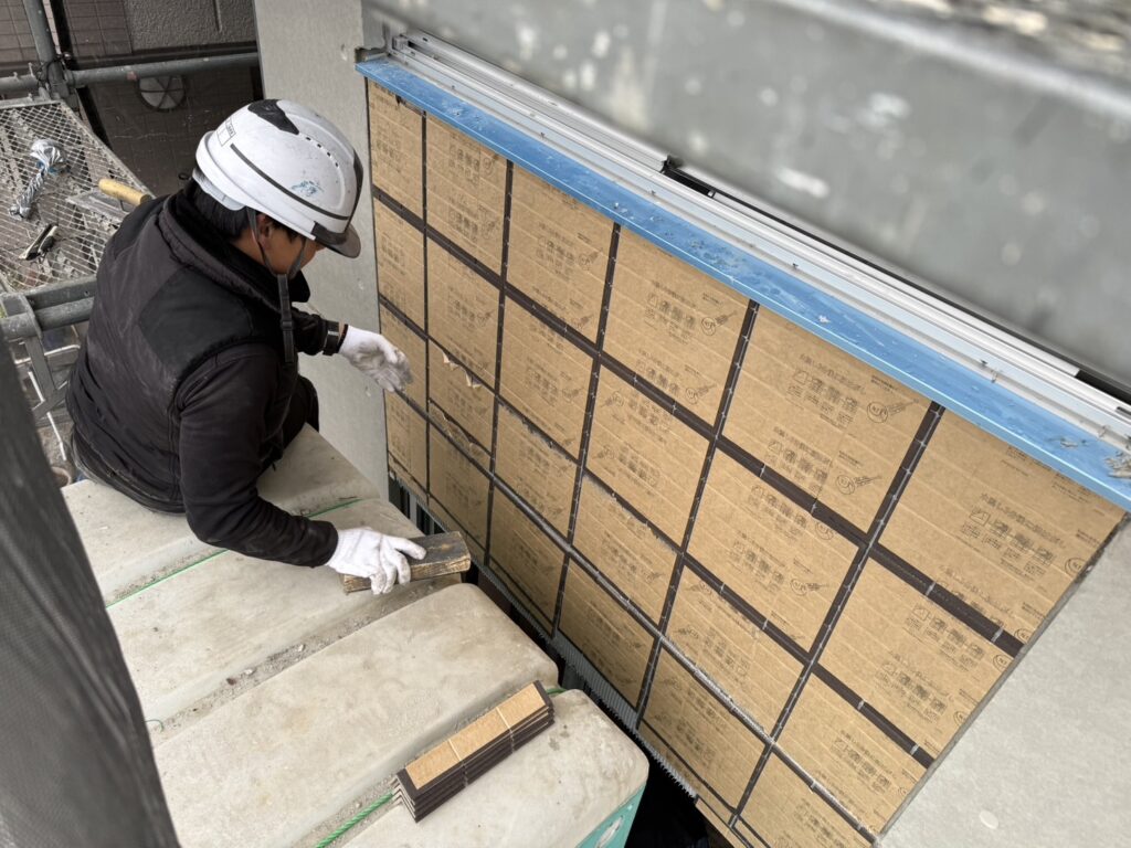 新築マンションタイル貼り